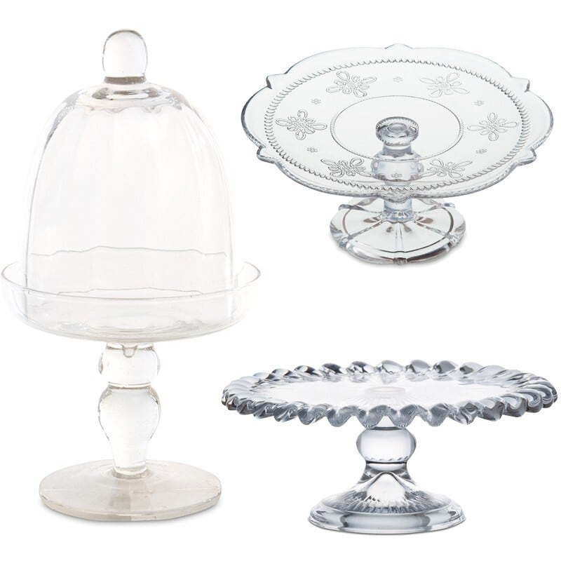透明感あふれるクリアガラスで仕上げられた、クラシカルな佇まいのケーキスタンドです。